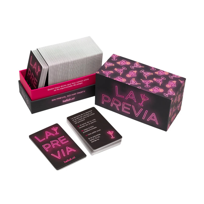 La Previa es el party game ideal para encender cualquier reunión entre amigos. Con 275 cartas llenas de retos, preguntas, pruebas y dinámicas pensadas para romper el hielo, reírse sin control y transformar un par de copas en una noche verdaderamente inolvidable.